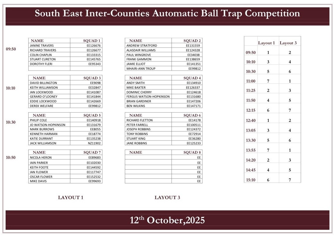 Sunday 12th October, 2025 - South East Inter-Counties Automatic Ball Trap